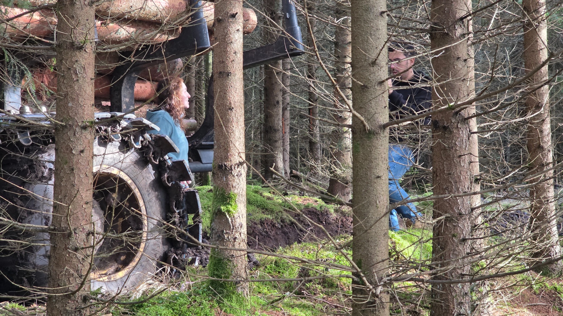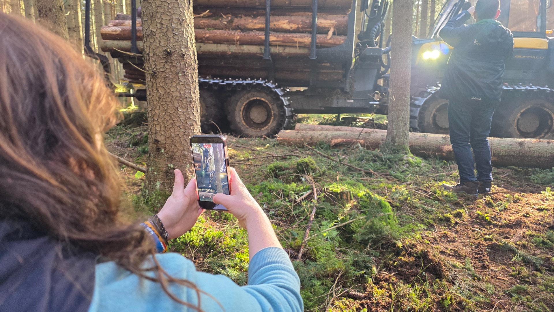 natáčela ve volarských lesích práci našich strojů Ponsse Scorpion a Ponsse Bufallo, obutých do kolopásů, na méně únosných terénech. Kromě těžby dřeva ji velmi zaujal i náš chov včel.